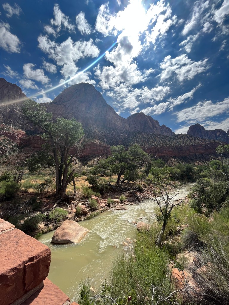 Originally we’d wanted to stop at the Emerald Pools Trail, but it was still a mildly hot day even in late August so we decided to just enjoy our bike ride instead. It did not at all disappoint. Although, we had to yield to shuttles by pulling over, the roadway itself offered so much space to ride and sightsee. The views were breathtaking and with very few other cyclists or people around, the quiet that accompanied it was serene. On the way back to the bike shop, we amped up the speed a bit and really had a blast! This trip actually made me consider purchasing an eBike once we returned home lol