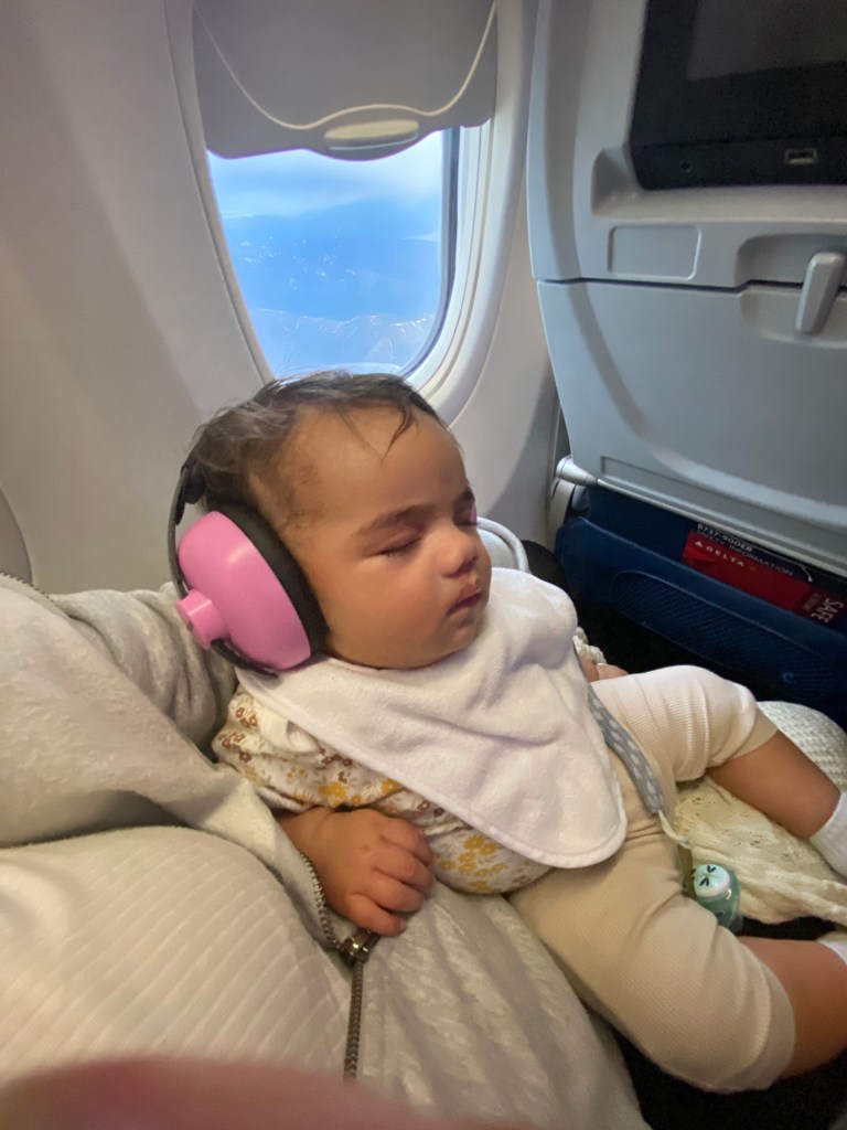 By the time our daughter was 4-months old, we knew her wake windows pretty well. We also knew that the longest stretch of time in which she’d be asleep would be at night. With that in mind, we booked our first leg of our trip as a red-eye flight so that she would be ready to sleep once we boarded the plane and took off. She woke twice, at most, during the entirety of that flight and went right back to sleep once I gave her milk. Having slept for almost the entirety of the flight, by the time we arrived at our layover destination, she was just waking up which made for the perfect opportunity to take a break in the airport. We used this layover time to stretch our legs, change her diaper, grab a quick bite, and stimulate her as much as possible before boarding again. Our next and last flight to our final destination took off right before her next nap and thankfully was a much shorter flight, so once again, the entire ride, she slept. I can’t stress how beneficial it can be to align your itinerary with your little one’s wake windows as best as you can. Obviously babies are fickle and unpredictable at times so there’s only so much you can do, but if you can, I would highly recommend booking your flight(s) around your baby’s sleep schedule.