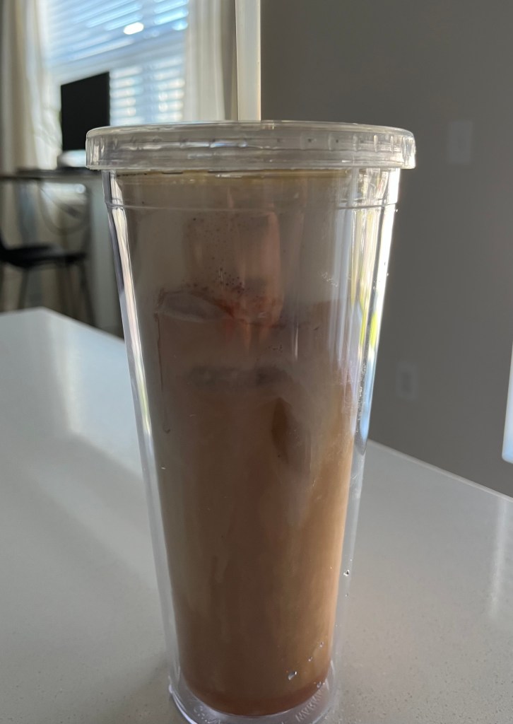Lastly, using a milk frother, you’ll want to create your cold foam. In my opinion, the absolute best way to achieve the sweet cold foam taste from Starbucks, you can use Chobani’s Sweet Cream Creamer. In a cup or mug, add a few tablespoons of creamer and froth it for 1-2 minutes. Add the cold foam overtop your drink and drizzle with extra caramel drizzle. There you have it. An iced white mocha with sweet cold foam and extra caramel drizzle at home. Enjoy! 🙂