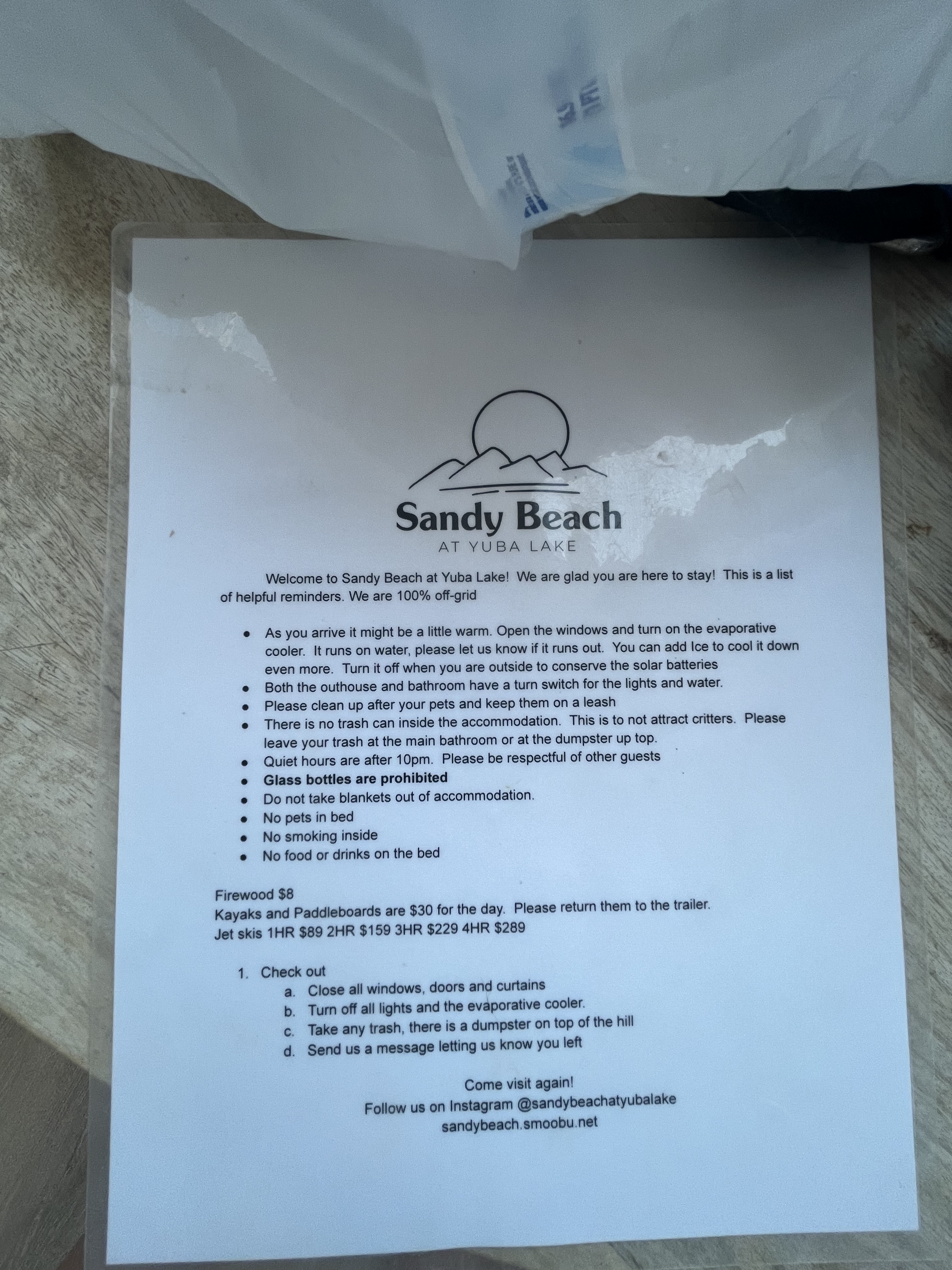 Sandy Beach at Yuba Lake offers numerous camping options, whether you’d like to rent their campers, glamping tents or dome, a party cabana, airstream, tiny home, or pitch a tent and beach camp. There’s something for everyone. We opted for the dome as we’ve always wanted to glamp in one since first seeing one while glamping at Airydale Retreat in PA.