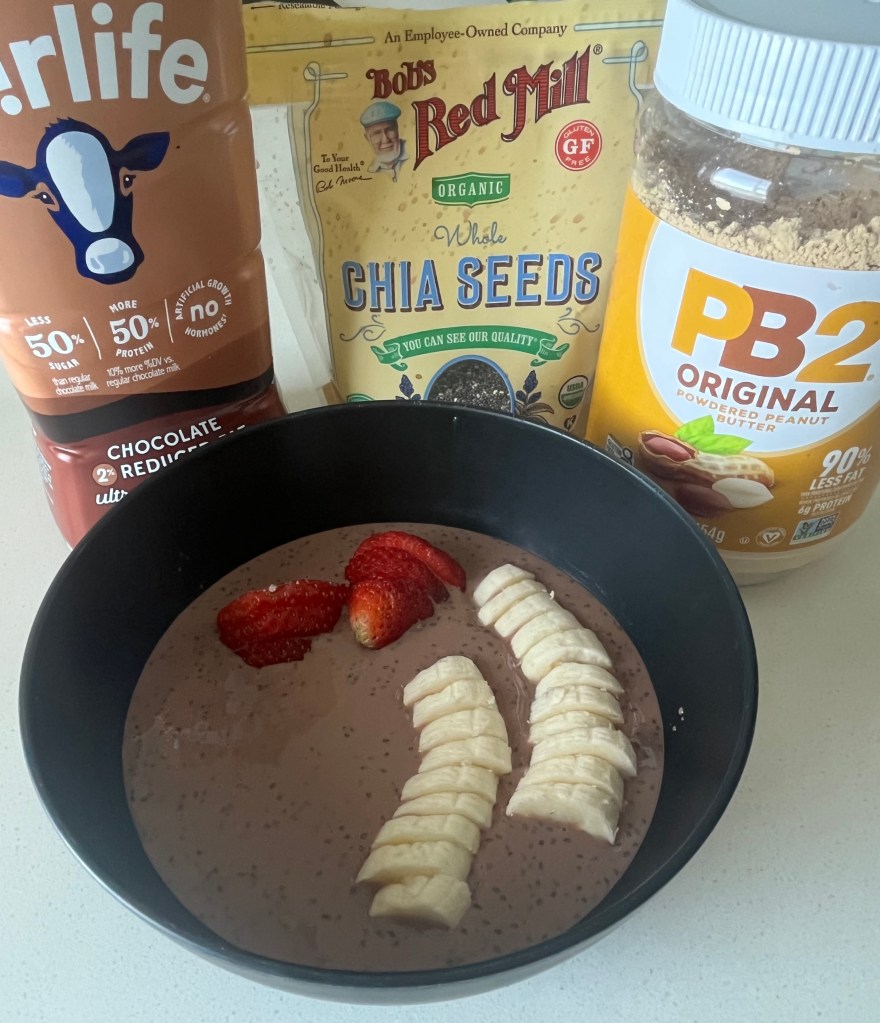 While prioritizing my protein, I also wanted to make sure I was eating enough fiber. To achieve this I turned to a popular favorite – chia pudding.