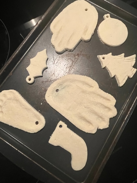 - The dough sometimes puffs up for some ornaments. When stamping hand or footprints, apply enough pressure to create a clear indent to help combat this.