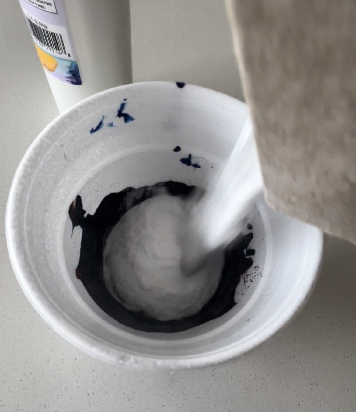 As far as supplies go, I purchased nothing out of pocket. Using my kid’s acrylic paint (previously purchased from The Dollar Tree) and a few tablespoons of baking soda, I created my baking soda/paint mixture. I would say the ratio of paint to baking soda should be about 2:1.