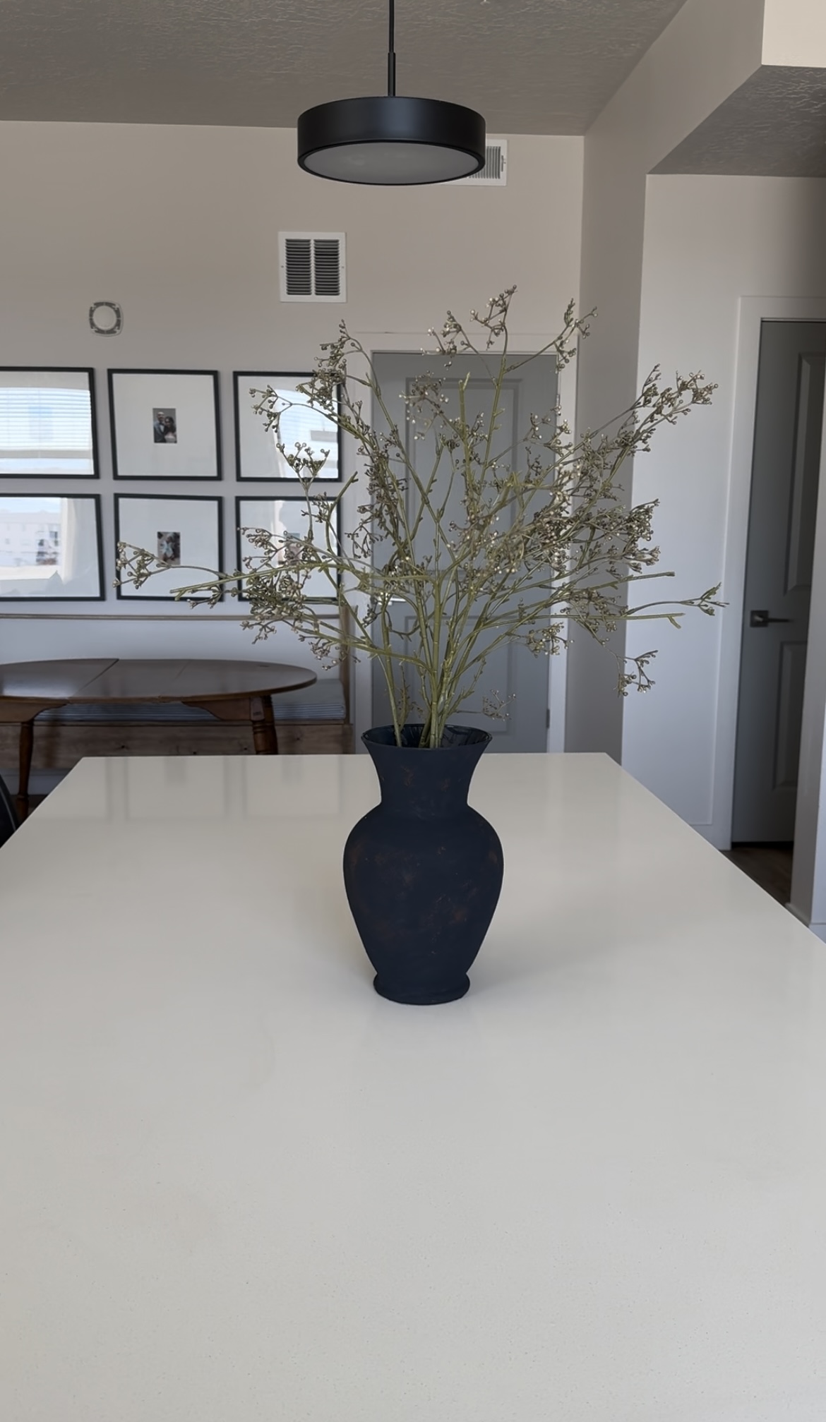 Our apartment features a gorgeous 8-foot-long kitchen island that I’ve been meaning to adorn with a focal point. In this case, a beautiful ceramic, pottery-like vase paired with stems. Unfortunately, as a working Mom of three who’s also pursuing her degree online, a $45 vase simply isn’t in the budget. However, I will always try to find a way to achieve my home decor goals within my limitations.