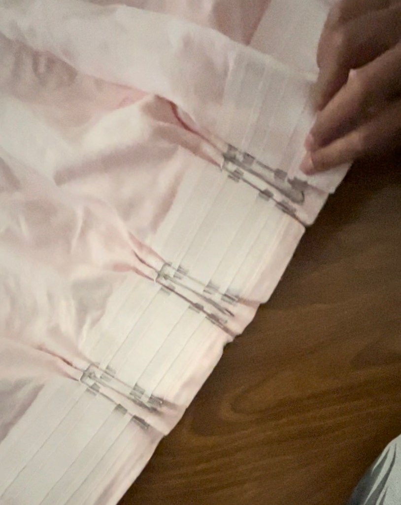 Once complete, I used drapery hooks to create a pinch-pleated look on all four curtain panels.